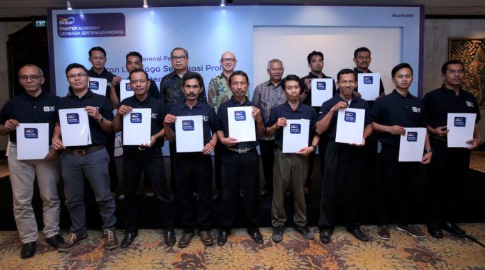 Ketua Badan Nasional Sertifikasi Profesi, Ir. Sumarna F. Abdurahman M. Sc menambahkan: “Kami berbangga dapat memberikan lisensi LSP kepada Dulux Painter Academy. Ini adalah lisensi pertama di Indonesia untuk skema sertifikasi okupasi ‘Tukang Cat Bangunan Gedung’. Kami melihat inisiatif ini sebagai langkah yang strategis untuk meningkatkan standarisasi kualitas sumber daya manusia, khususnya untuk para pekerja individual di Indonesia”.
